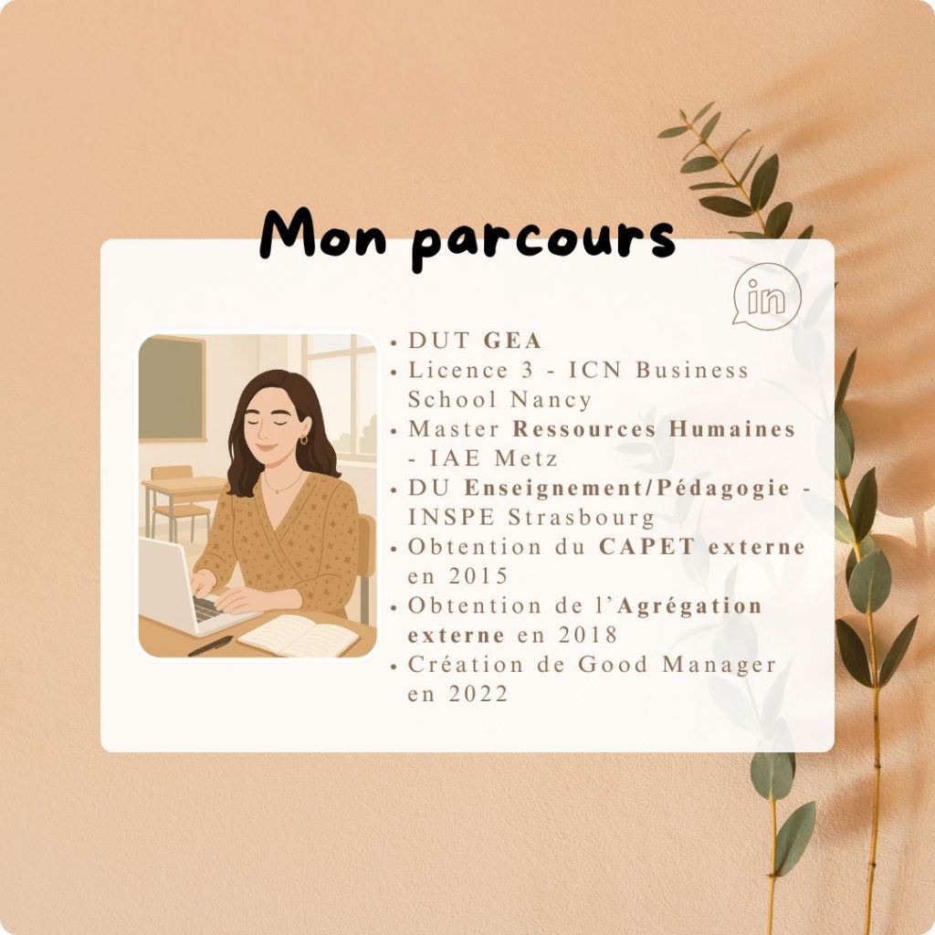 Aujourd’hui, je cumule donc mon métier d’enseignante en lycée avec l’accompagnement des candidats qui se préparent à ces concours exigeants. Pour plus de détails sur mon parcours, n’hésitez pas à consulter mon profil LinkedIn.